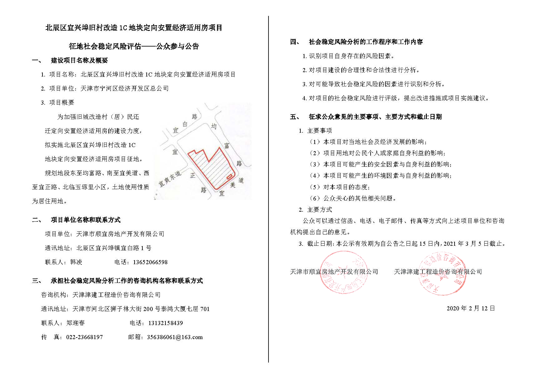 北辰區(qū)宜興埠舊村改造1C地塊定向安置經(jīng)濟(jì)適用房項(xiàng)目征地社會(huì)穩(wěn)定風(fēng)險(xiǎn)評估-公眾參與公告